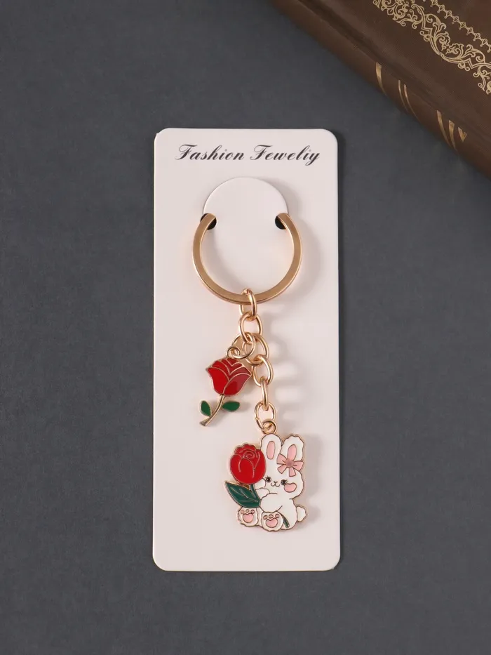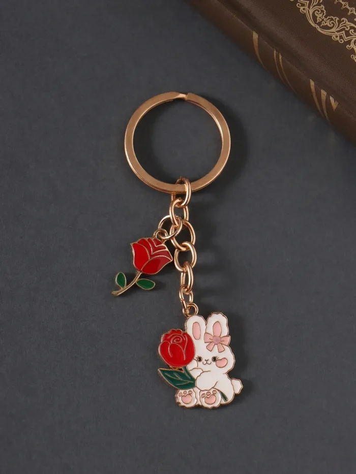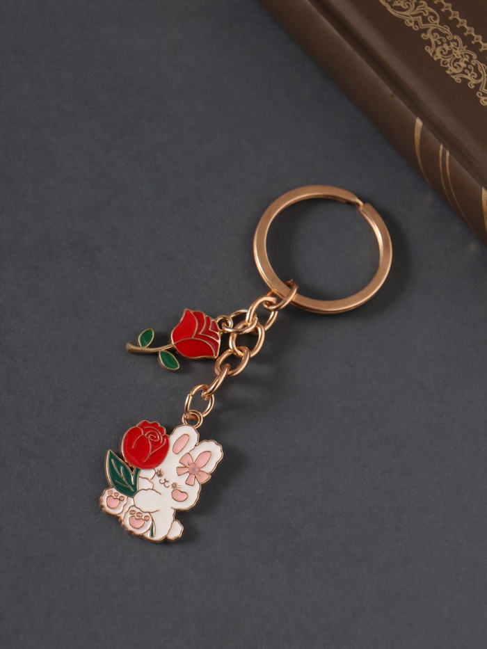 Брелок металл, эмаль "Зайка и цветы" 9 см