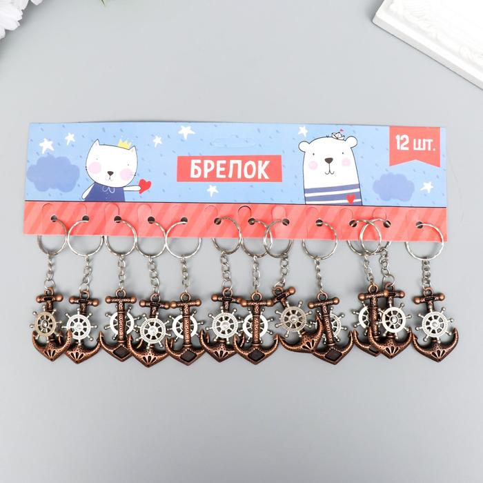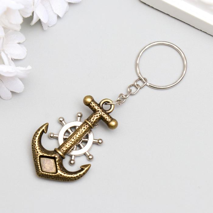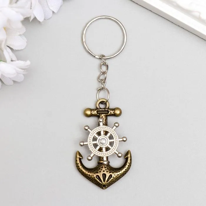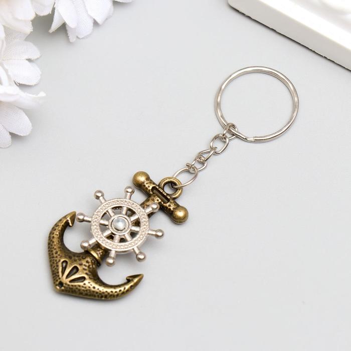 Брелок металл "Якорь и штурвал" 4,3х2,8 см