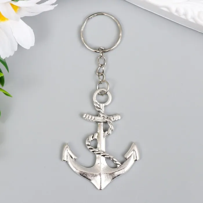 Брелок металл "Якорь с веревкой" серебро 5,5х4 см