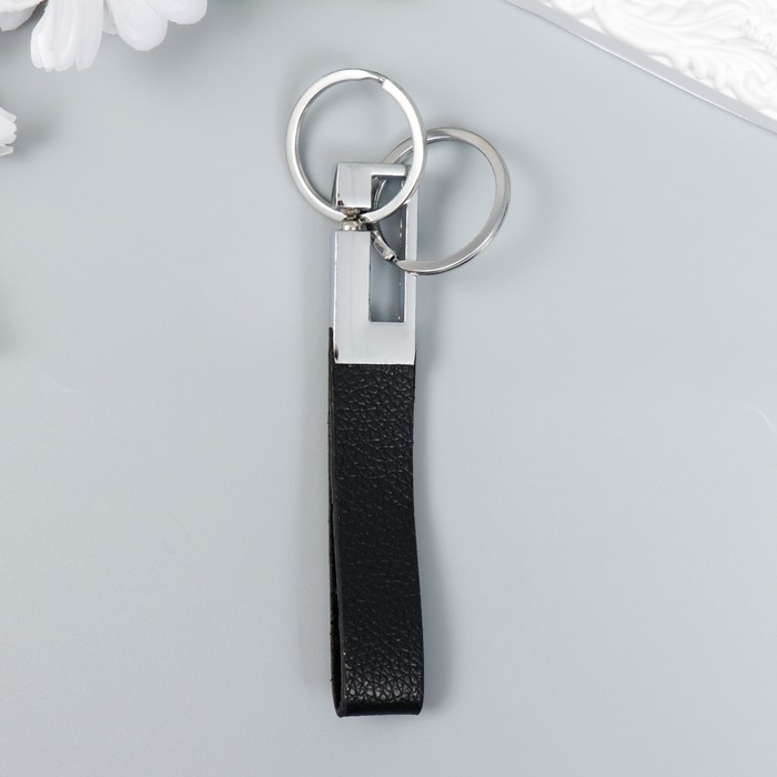 Брелок металл "Карабин стильный с ремешком и 2-мя кольцами" черный, серебро