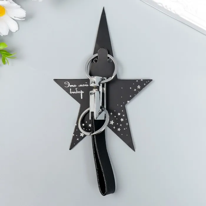 Брелок металл "Карабин стильный с ремешком и 2-мя кольцами" черный, серебро — Характеристики
