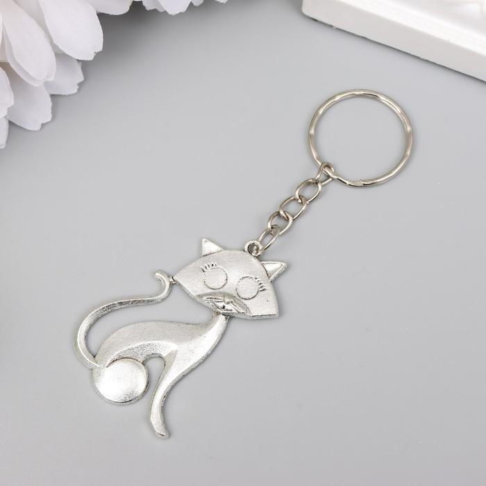 Брелок металл "Кошечка" серебро 4,3х3 см