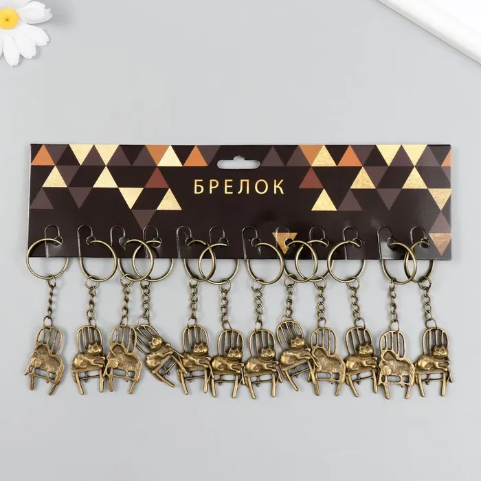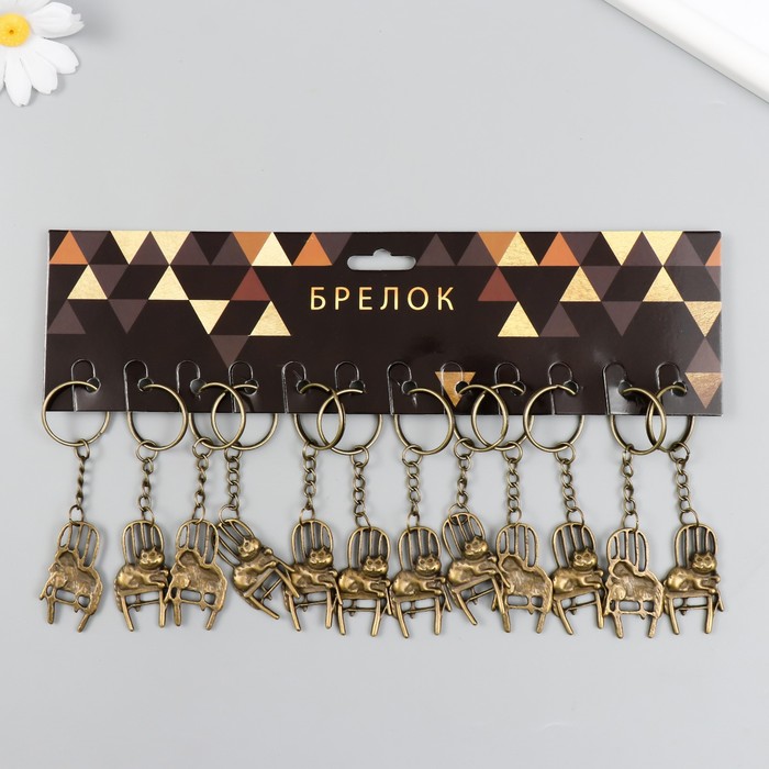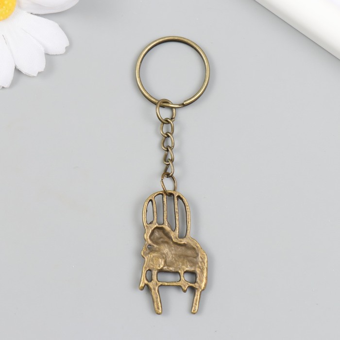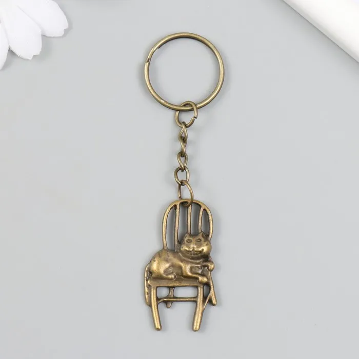 Брелок металл "Кот на стуле" бронза 2,2х4,1 см