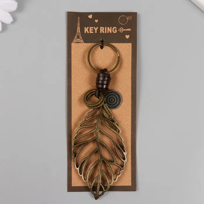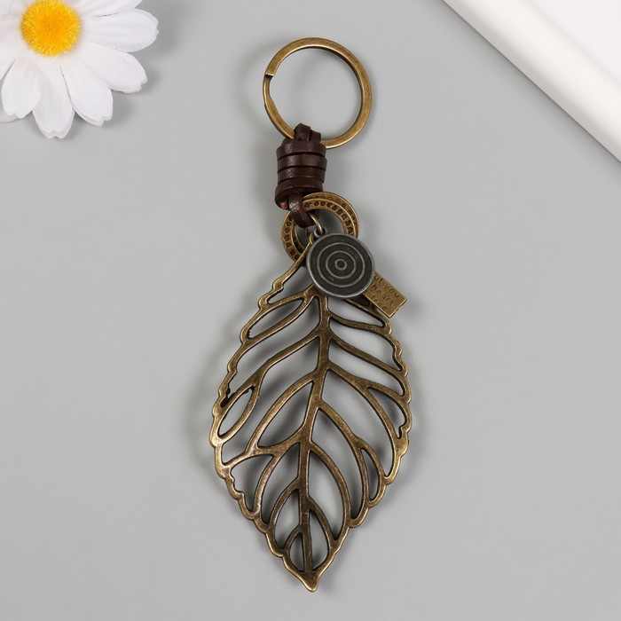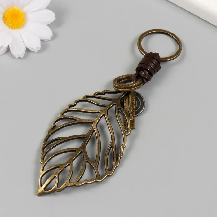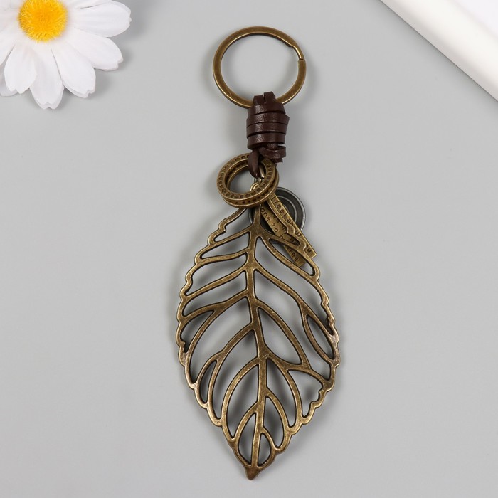 Брелок металл, кожзам "Скелетированный лист" бронза, узел 3,6х7,2 см — Характеристики