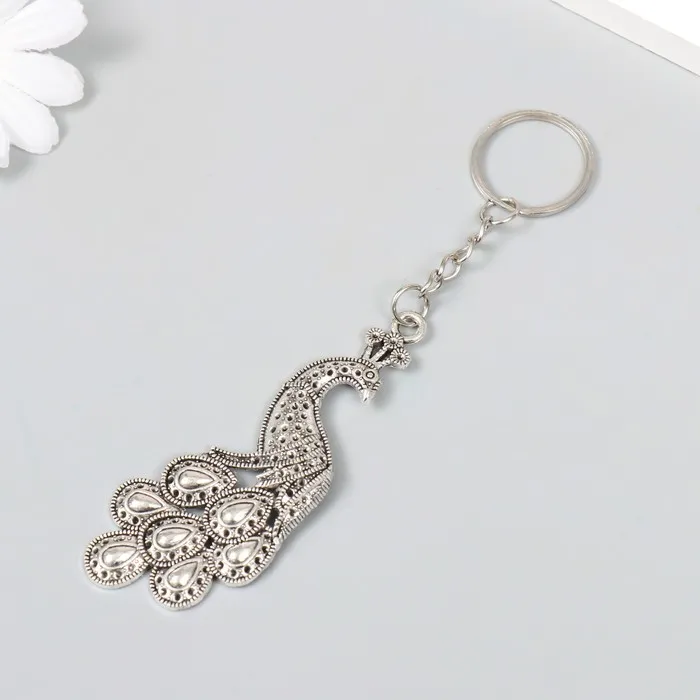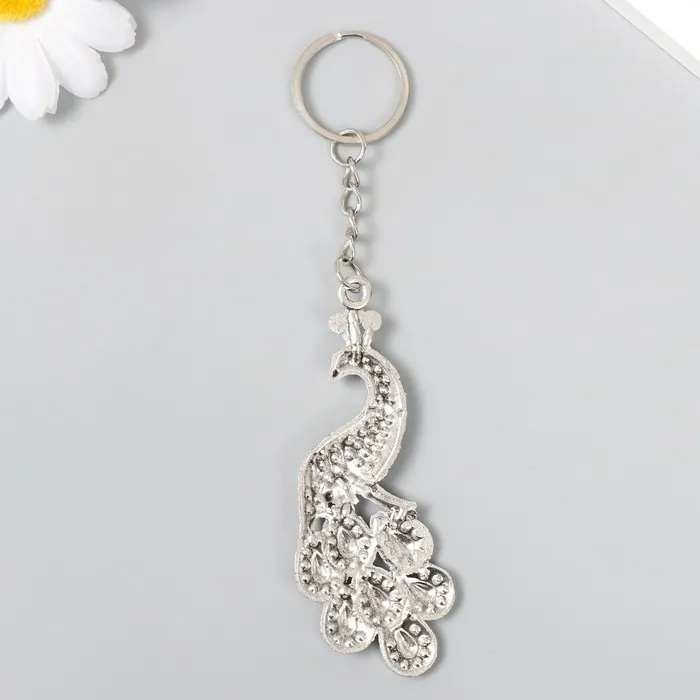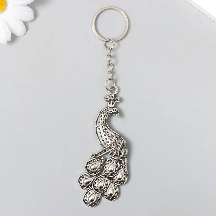 Брелок металл "Павлин" серебро/золото 7,2х3 см