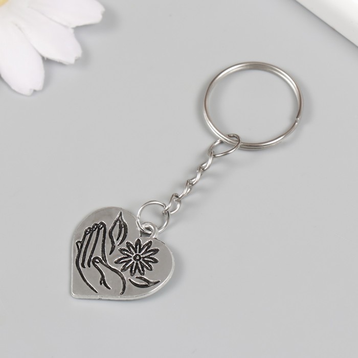 Брелок металл "Ромашка в руке - Сердце" 2,3х2,5 см