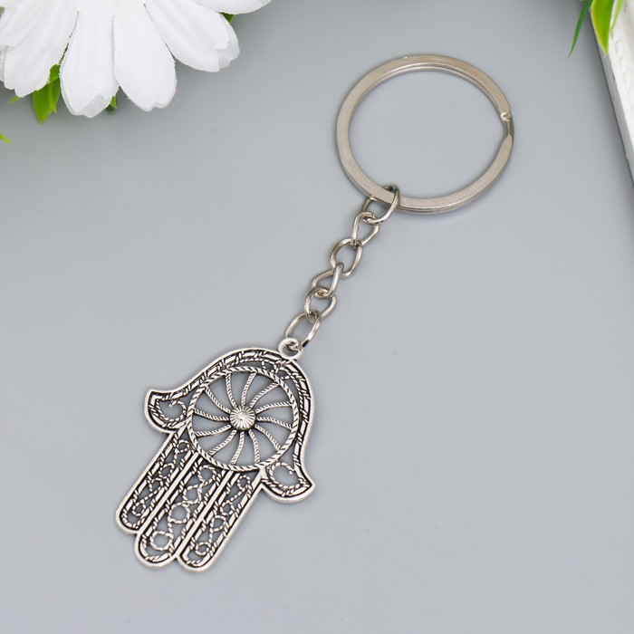 Брелок металл "Рука в узорах" серебро 3х4,5 см