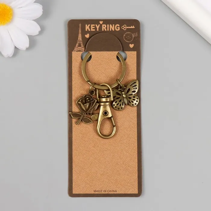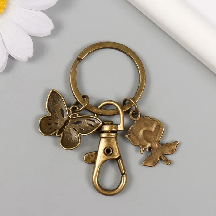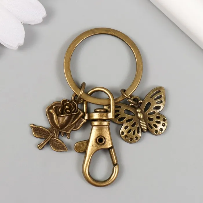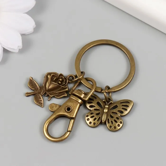 Брелок металл с карабином "Роза и бабочка" бронза 6 см — Характеристики