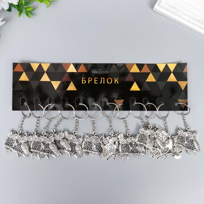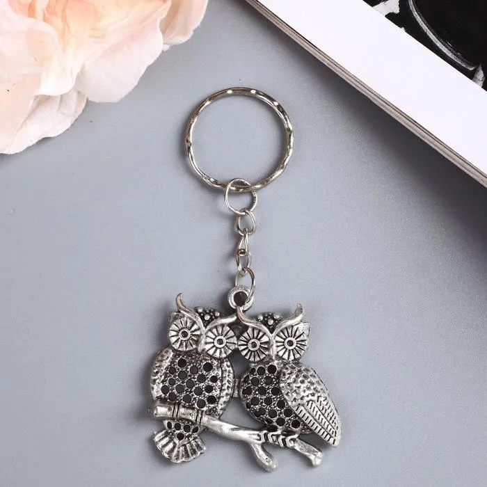 Брелок металл "Совушки на ветке" 3,5х3,5 см