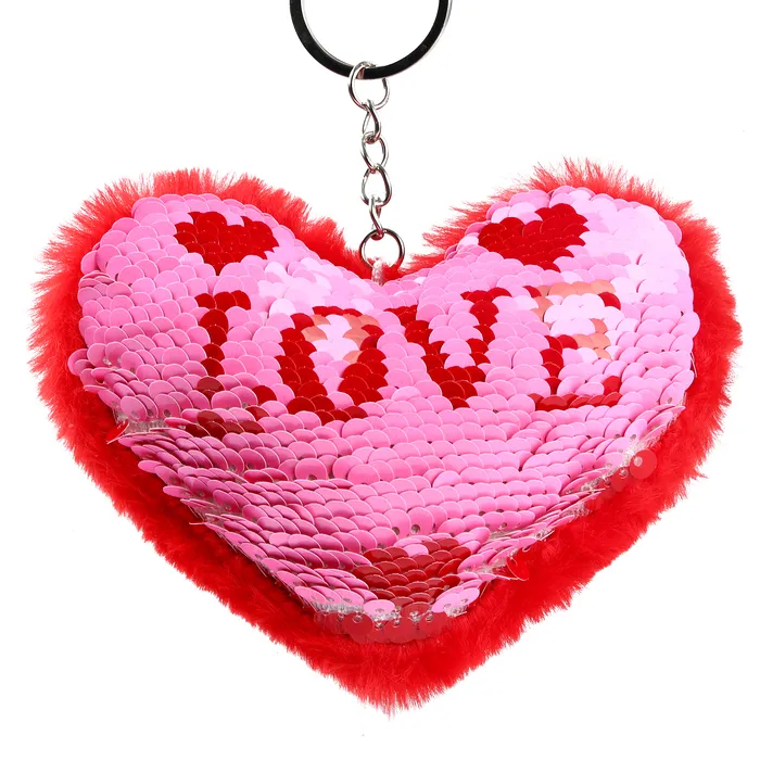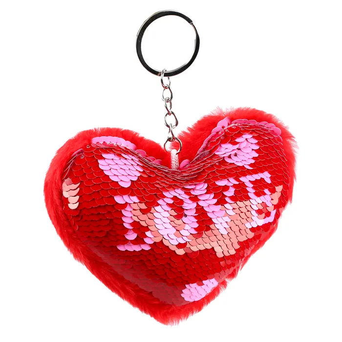 Брелок-мягкая игрушка «Сердечко» с пайетками, 10 см, цвет красно-розовый