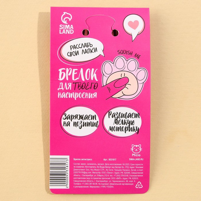 Брелок мялка для ключей «Лапка» 4.6×7 см