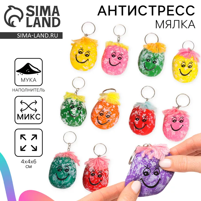 Брелок мялка «Забавная рожица», с мукой, в пакете — Характеристики