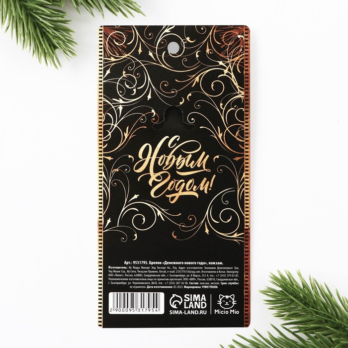 Брелок новогодний для ключей «Денежного нового года», кожзам., 4 х 8.5 см — Характеристики