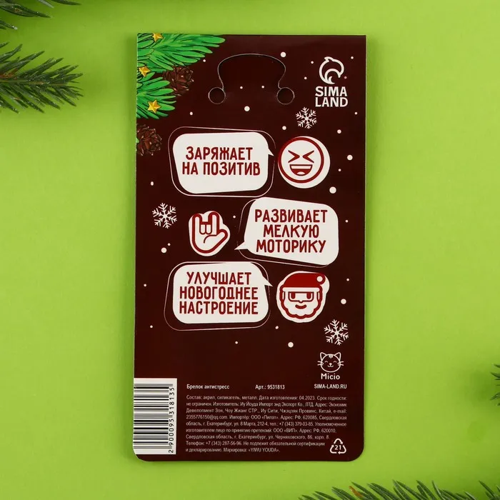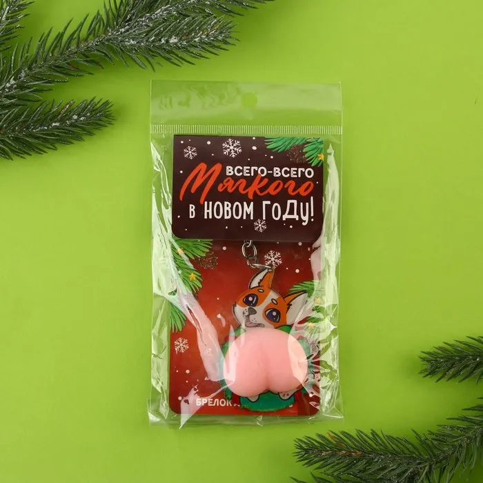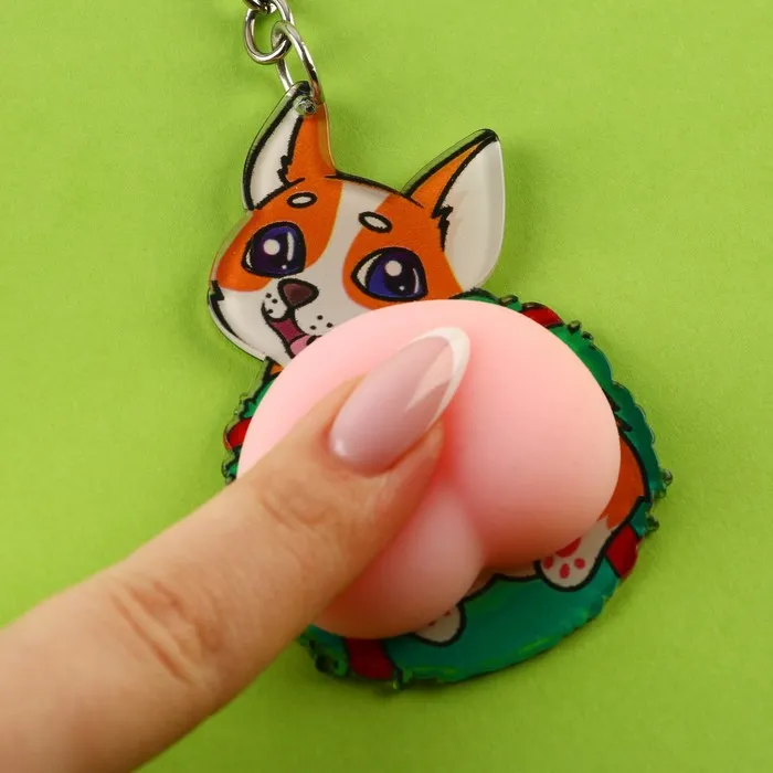 Брелок новогодний, для ключей, мялка «Корги с венком» 4,6 х 12,8 см — Характеристики