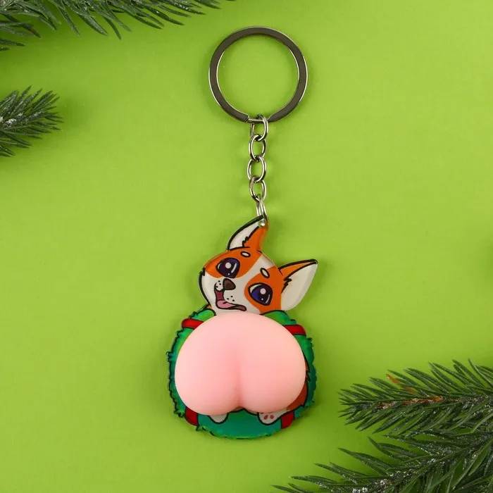 Брелок новогодний, для ключей, мялка «Корги с венком» 4,6 х 12,8 см