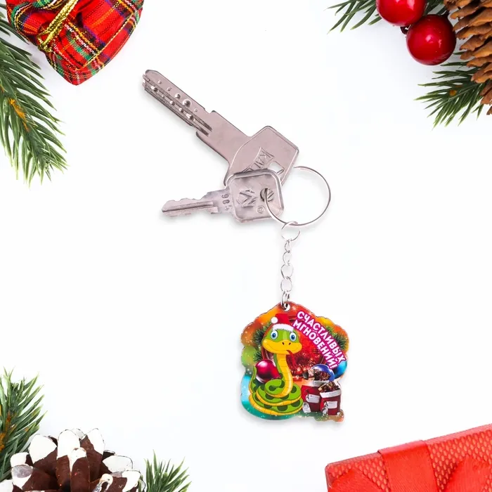 Брелок новогодний "Счастливых мгновений!" символ года, змея, мешки — Характеристики