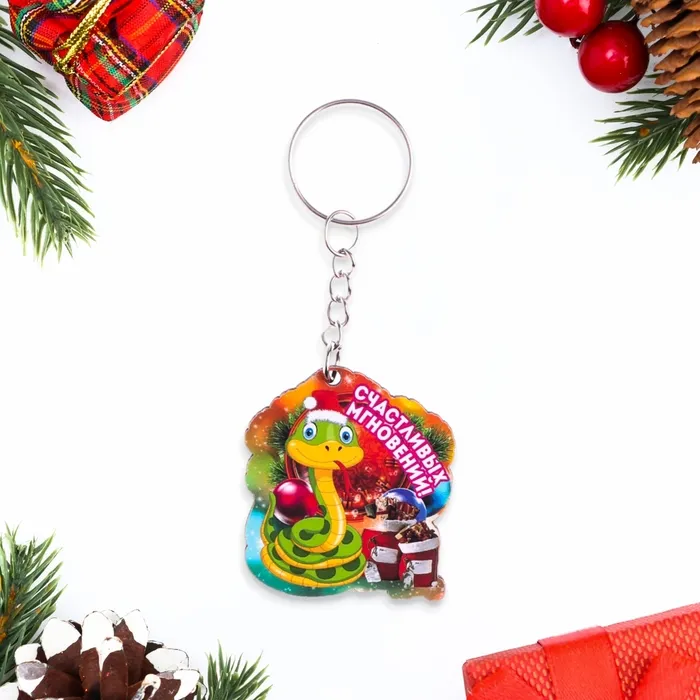 Брелок новогодний "Счастливых мгновений!" символ года, змея, мешки