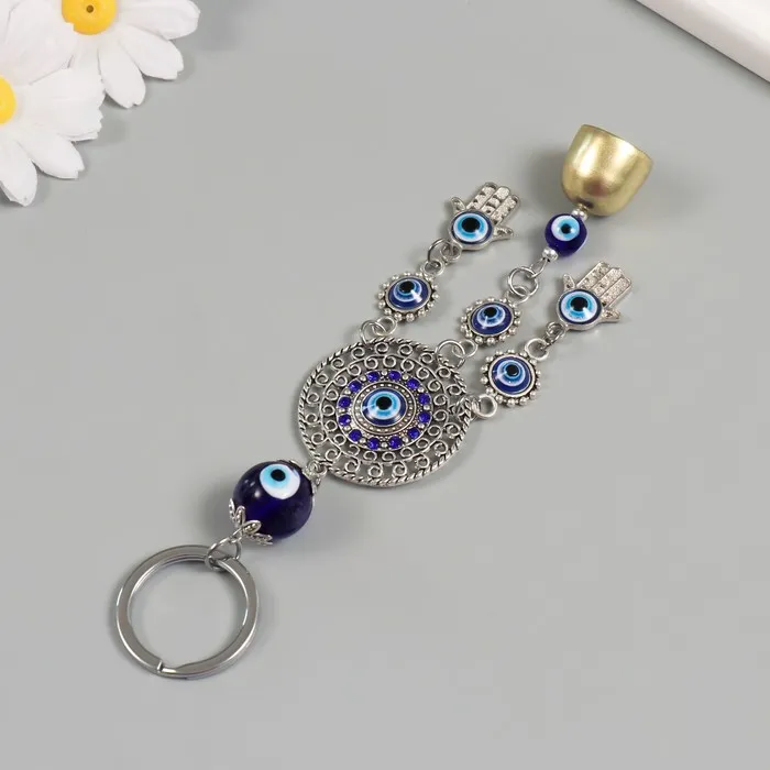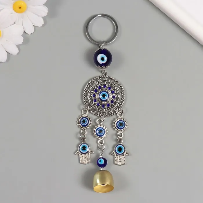 Брелок от сглаза металл "Мандала с Рукой Фатимы и колокольчиками" 19 см — Характеристики