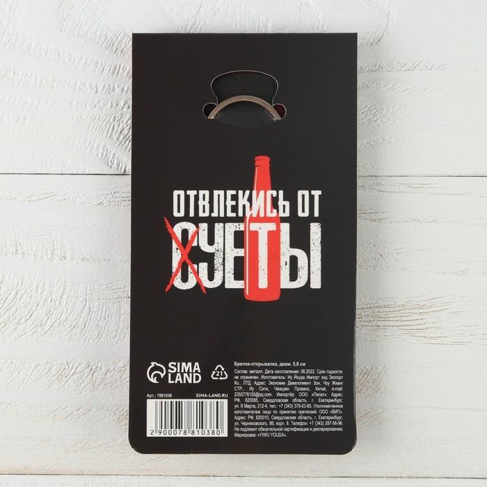 Брелок открывашка для ключей «Отвлекись от суеты», диам. 5,8 см — Характеристики