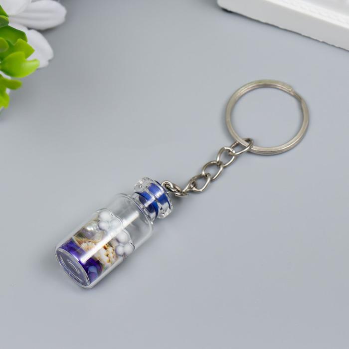 Брелок пластик "Ракушка и жемчужина в бутылочке" синий 3,6х1,6х1,6 см — Характеристики