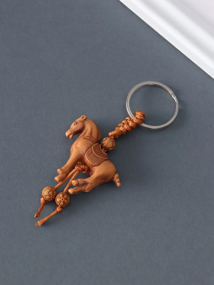 Брелок пластик, текстиль "Конь" под дерево 3,7х4,3х1,2 см