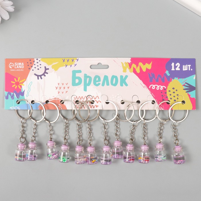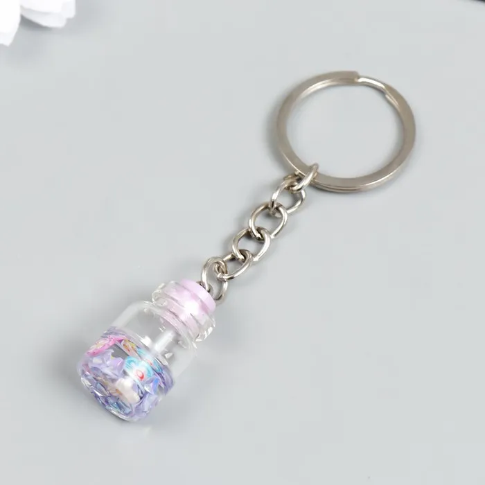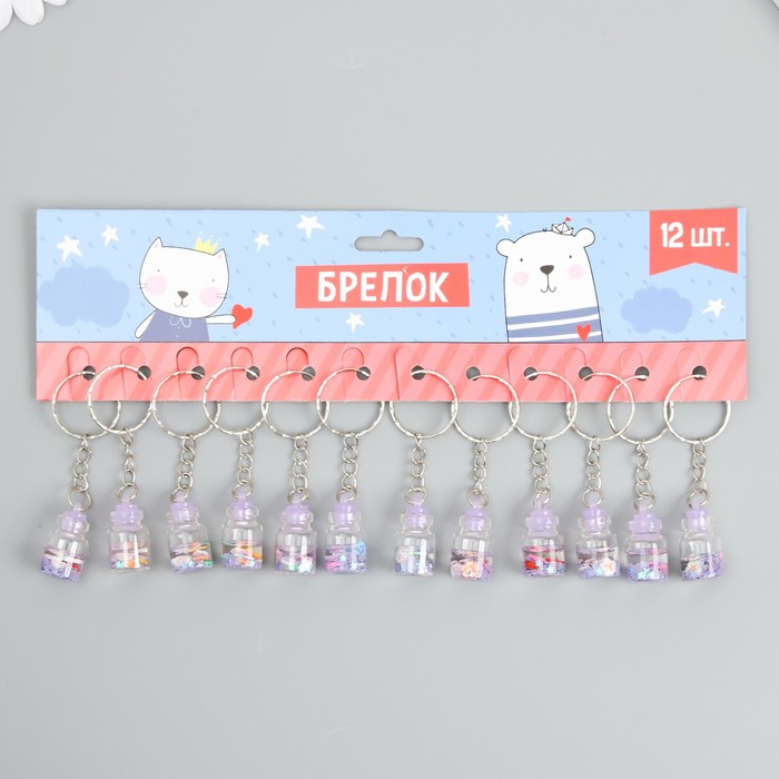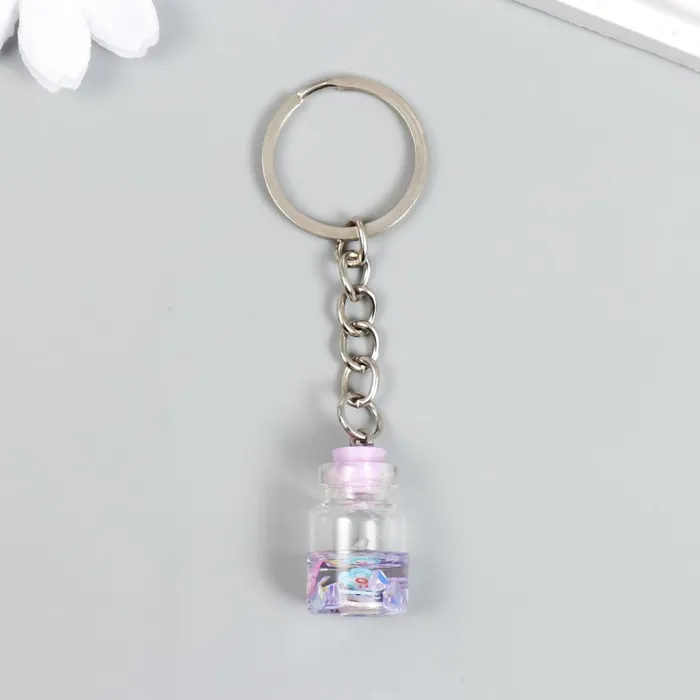 Брелок пластик "Цветочки в бутылочке" сирень 2,4х1,5х1,5 см — Характеристики
