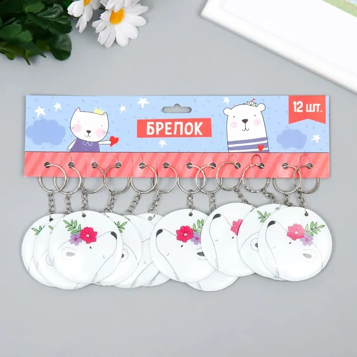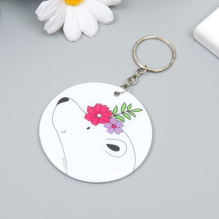 Брелок PVC "Белый мишка с цветочным венком" 6,2х6,2 см