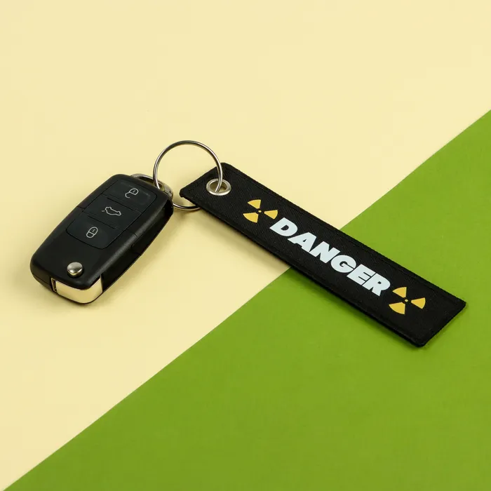 Брелок для автомобильного ключа Danger в виде ремешка-ремувки - это стильный и функциональный аксессуар для вашего автомобиля. Он выполнен в виде ленты с логотипом “Danger” и позволяет быстро и легко прикрепить брелок к ключам, сумке или рюкзаку.