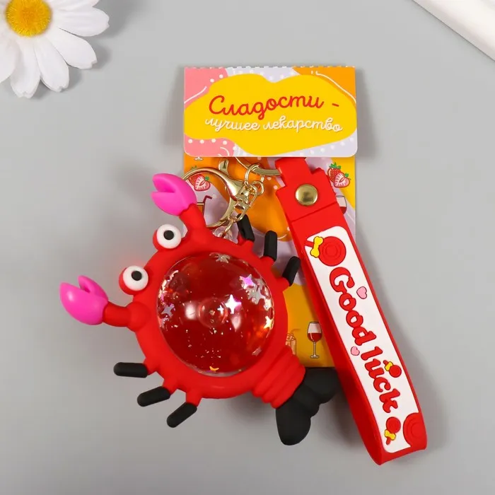 Брелок резина с карабином, ремешком "Крабик" водный с блёстками 9,5х6,5х4 см — Характеристики