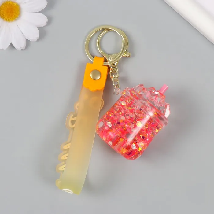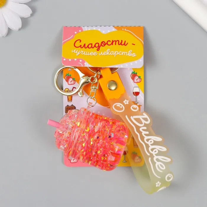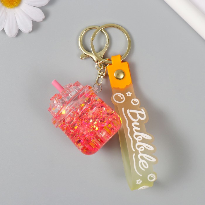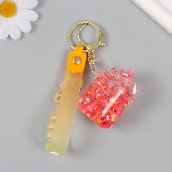 Брелок резина с карабином, ремешком "Стакан лимонада" водный с глиттером 4х6х6 см — Характеристики