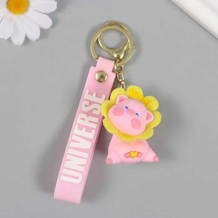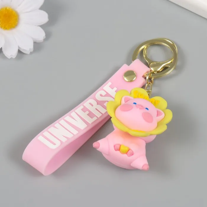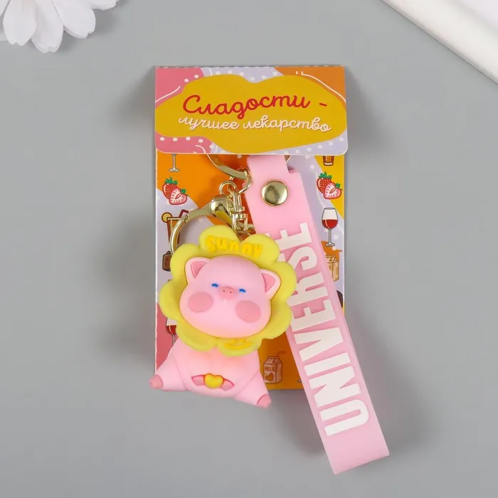 Брелок резина с карабином, ремешком "Свинка в цветочке" цветочек крутится 3,5х4,2х5,5 см — Характеристики