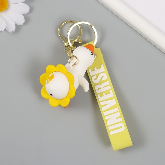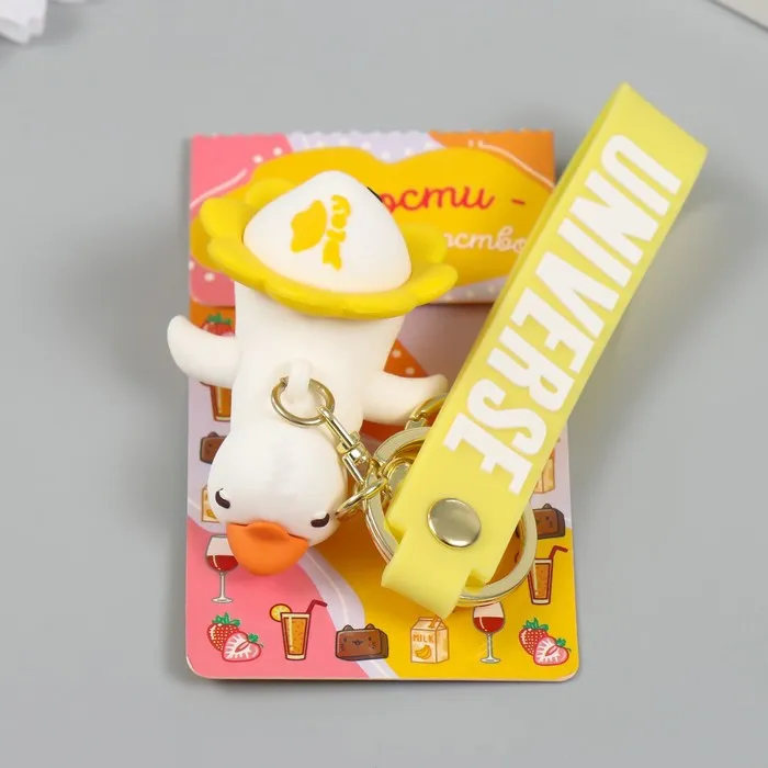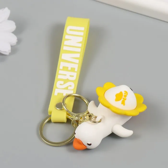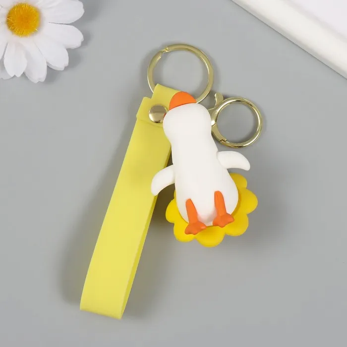 Брелок резина с карабином, ремешком "Утёночек лежит на пузе" цветочек крутится 3,8х7х3,5 см — Характеристики