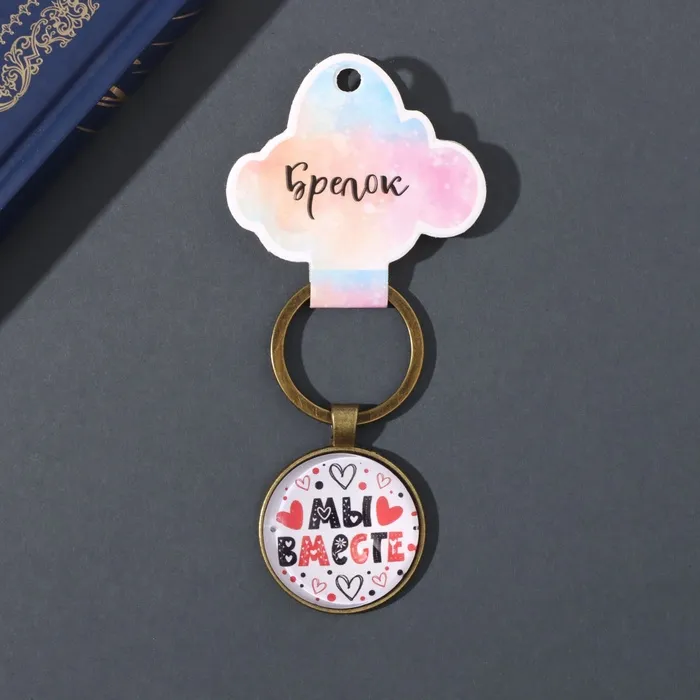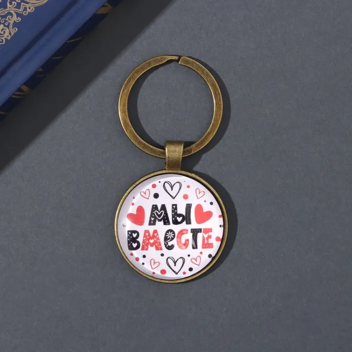 Брелок стекло, металл "Круг. Мы вместе" d=3 см — Характеристики