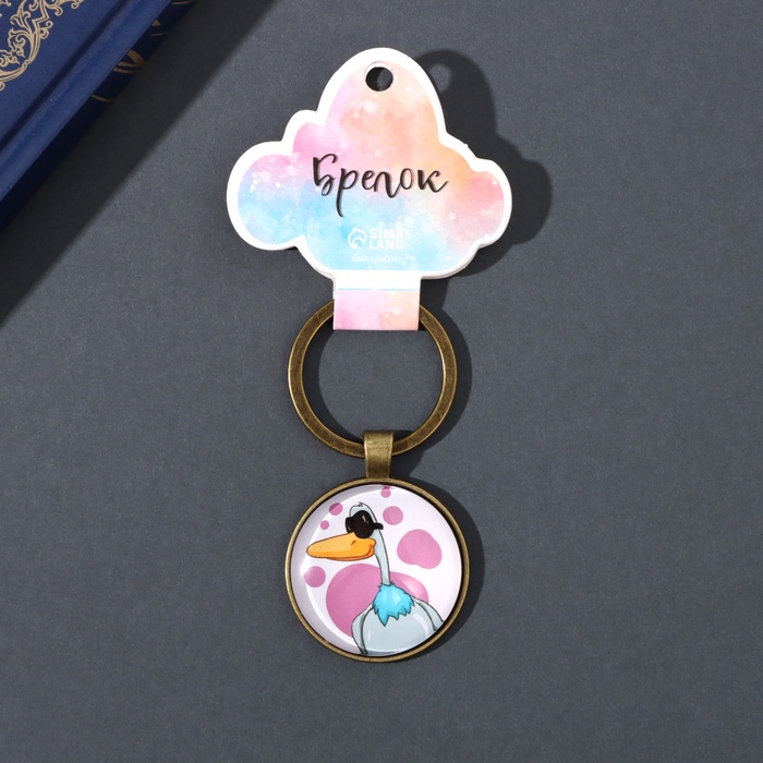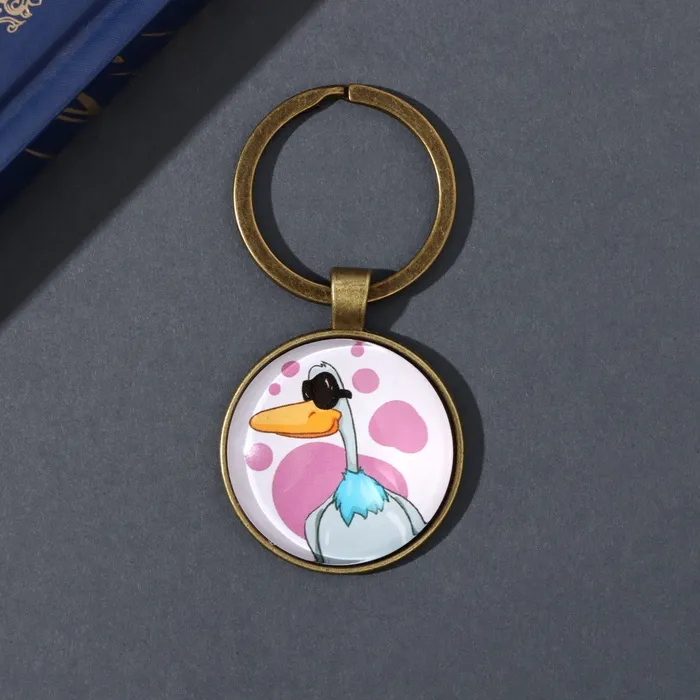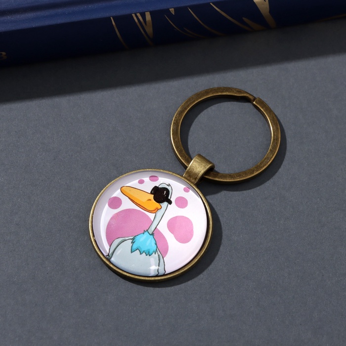 Брелок стекло, металл "Круг. Селезень в очках" d=3 см