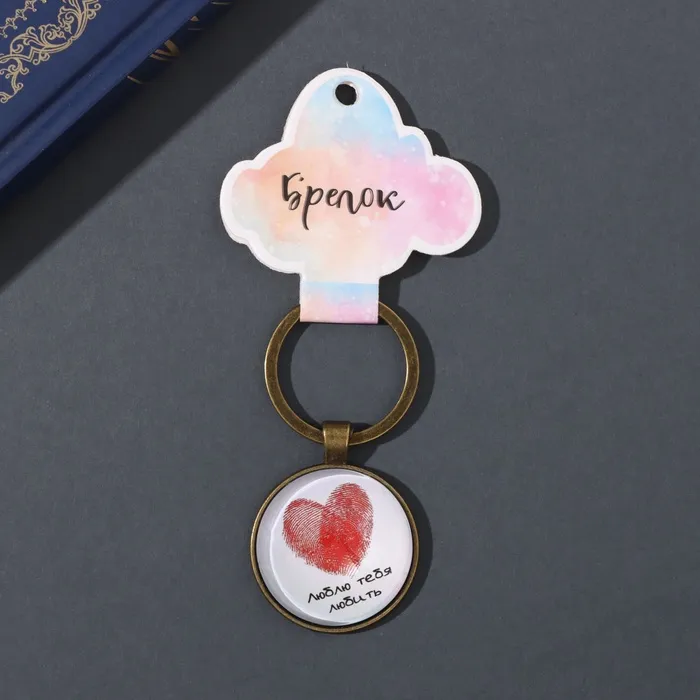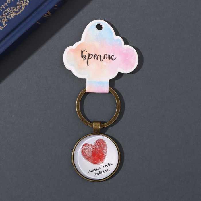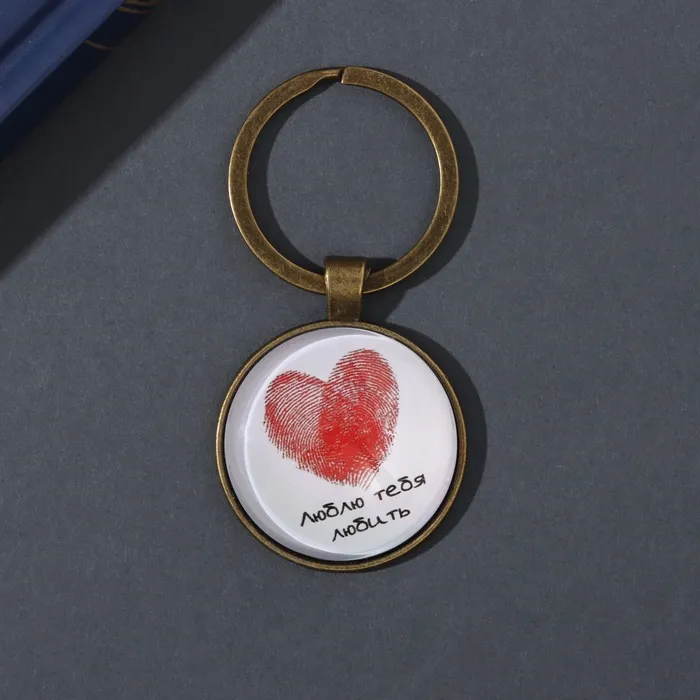 Брелок стекло, металл "Круг. Сердце отпечатки" d=3 см — Характеристики