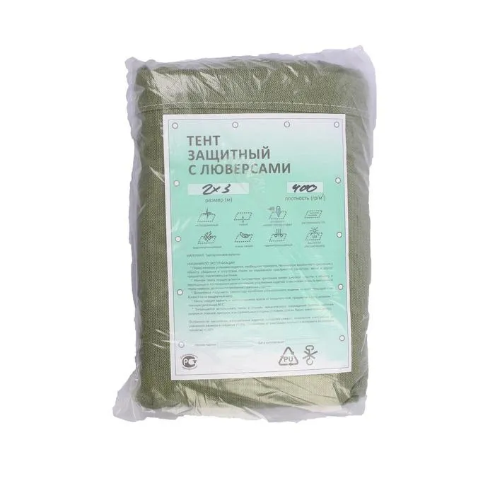 Брезент огнеупорный, 3×2 м, плотность 400 г/м², люверсы шаг 1 м, хаки — Характеристики