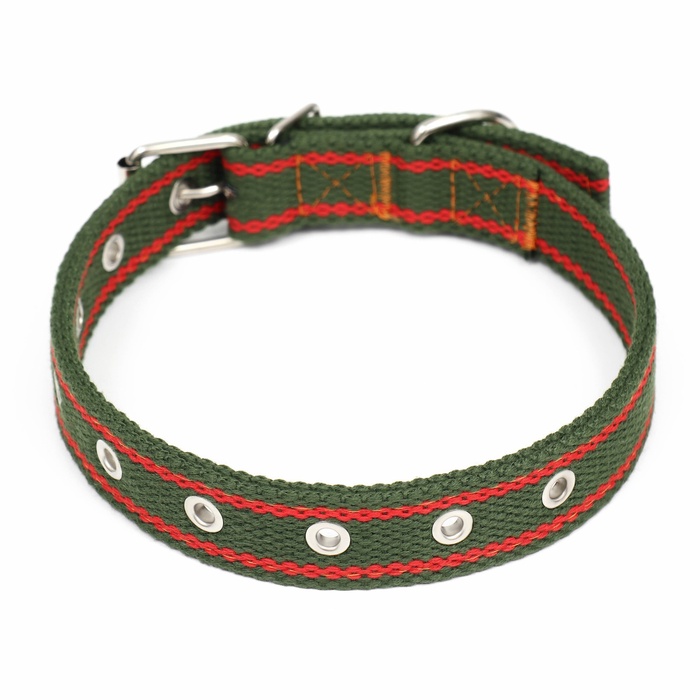Брезентовый ошейник, 58×2.5 см, безразмерный, двухслойный, цвет хаки — Характеристики