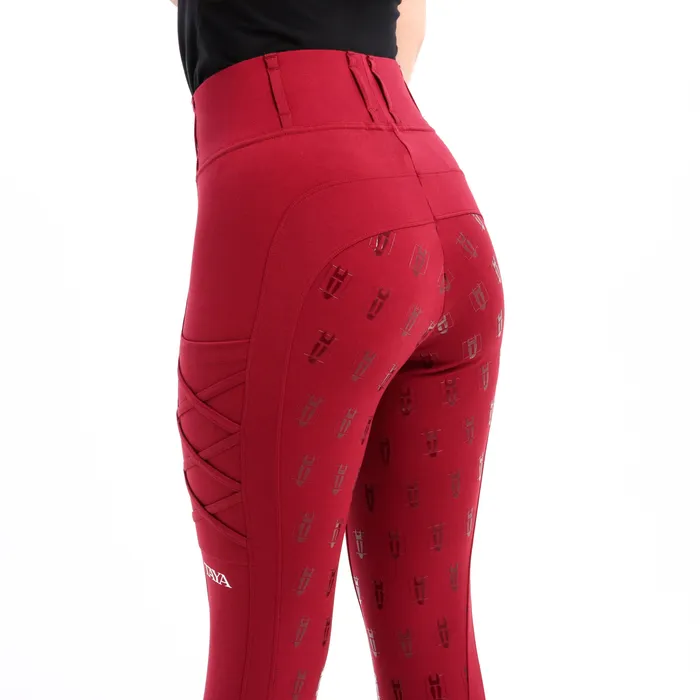 Спортивные бриджи для верховой езды «Aphrodite» представляют новую коллекцию «Pantheon» бренда TAYA Equestrianism. По ощущениям такие бриджи столь же комфортные, как и обычные женские спортивные лосины, но при этом имеют боковые карманы, а также полную силиконовую лею, которая надежно удержит в седле при любых обстоятельствах. Бордовые бриджи данной линейки имеют крепкие, максимально износостойкие, но вполне мягкие швы, а достаточно высокая талия и плотная посадка на широкой резинке пояса отлично защищает поясницу от продувания при активной езде или при использовании в комплекте с коротким спортивным топом. Данные конные бриджи с карманами, причем удобными, так как в них вмещаются не только мелкие вкусняшки для лошади, но и, к примеру, полностью помещается смартфон без вероятности его выпадения во время конкура или выездки. В них легче и проще переносить летнюю жару и можно считать своим стандартным всесезонным вариантом для не экстремальных температур.