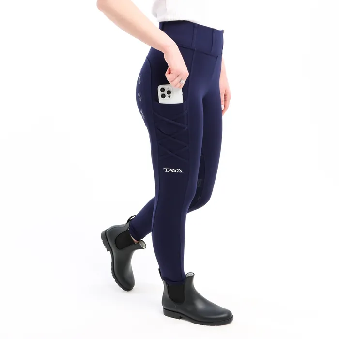 Спортивные бриджи для верховой езды «Aphrodite» представляют новую коллекцию «Pantheon» бренда TAYA Equestrianism. По ощущениям такие бриджи столь же комфортные, как и обычные женские спортивные лосины, но при этом имеют боковые карманы, а также полную силиконовую лею, которая надежно удержит в седле при любых обстоятельствах. Бордовые бриджи данной линейки имеют крепкие, максимально износостойкие, но вполне мягкие швы, а достаточно высокая талия и плотная посадка на широкой резинке пояса отлично защищает поясницу от продувания при активной езде или при использовании в комплекте с коротким спортивным топом. Данные конные бриджи с карманами, причем удобными, так как в них вмещаются не только мелкие вкусняшки для лошади, но и, к примеру, полностью помещается смартфон без вероятности его выпадения во время конкура или выездки. В них легче и проще переносить летнюю жару и можно считать своим стандартным всесезонным вариантом для не экстремальных температур.