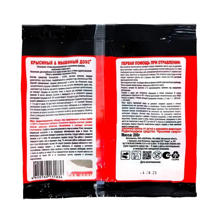 Готовая двухкомпонентная к применению приманка, окрашенная в яркие цвета предназначена для истребления всех видов мышей, крыс, а так же и других грызунов.