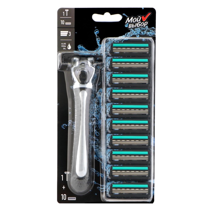 Бритва Мой Выбор – это идеальный инструмент для качественного и комфортного бритья. В комплект входит 10 сменных кассет, каждая из которых оснащена тремя острыми лезвиями, обеспечивающими гладкое скольжение по коже и минимизирующими риск раздражения. Увлажняющая полоска на кассете способствует дополнительному увлажнению во время бритья, что делает процесс более мягким и приятным. Основные характеристики: