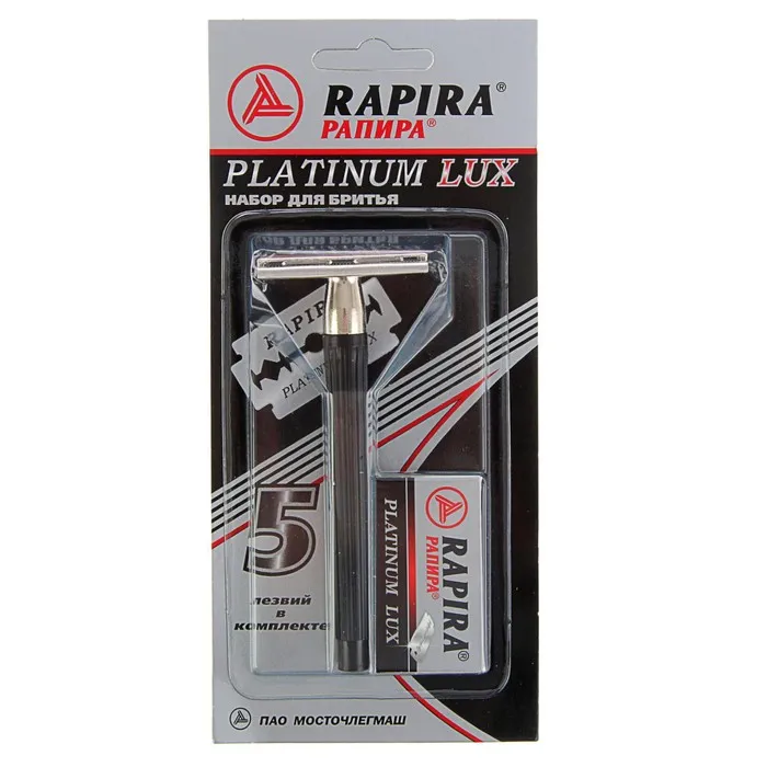Набор Platinum Lux включает классический Т-образный бритвенный станок и 5 лезвий.