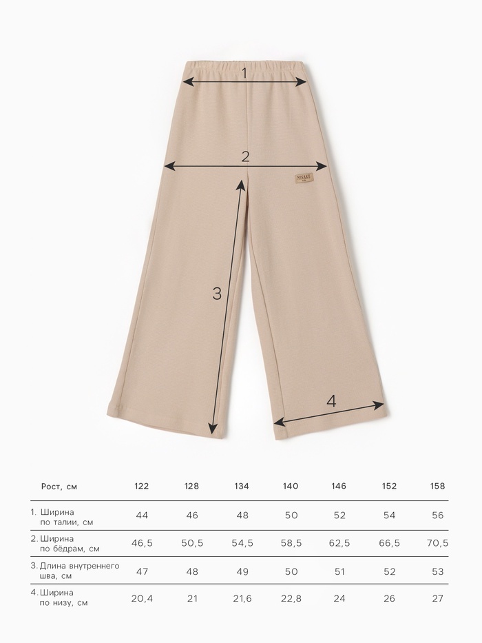Брюки детские MINAKU, бежевые, рост 122 см — Характеристики