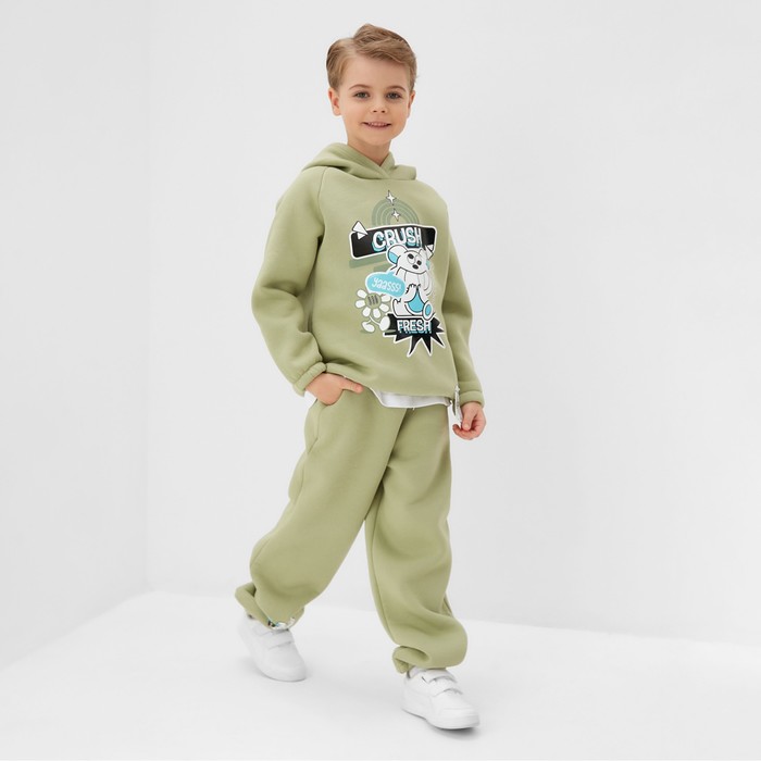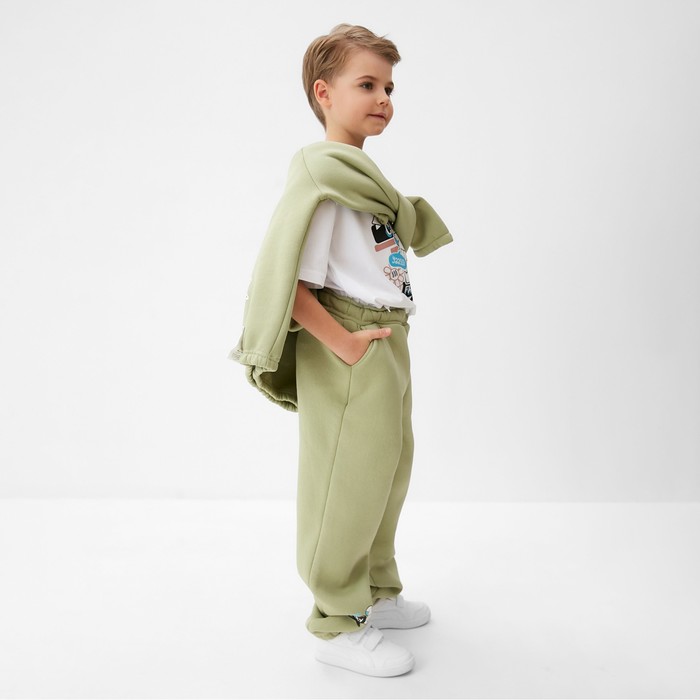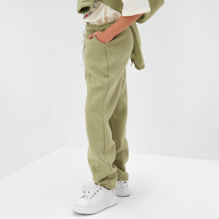 Брюки детские с начесом MINAKU: CRUSH, цвет оливковый, рост 134 см — Характеристики