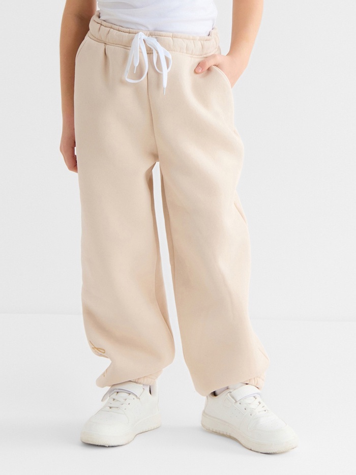 Брюки для девочки с начёсом MINAKU: Exclusive print, бежевые, Oversize рост 122 см — Характеристики