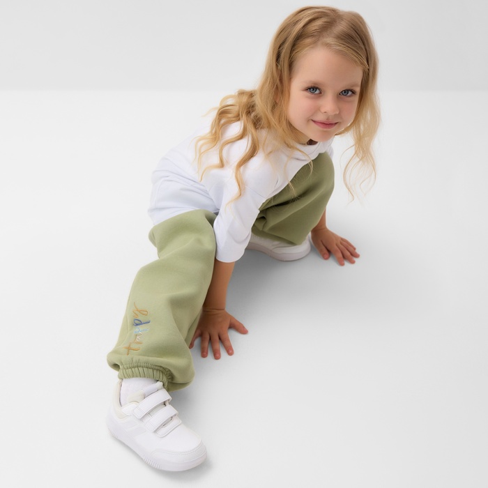 Брюки для девочки с начёсом MINAKU: Exclusive print, оливковые, Oversize рост 116 см — Характеристики