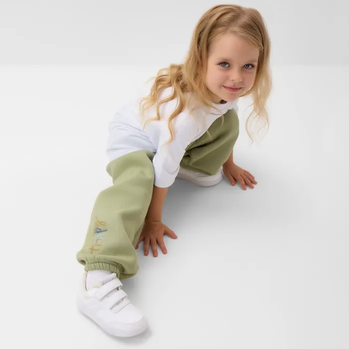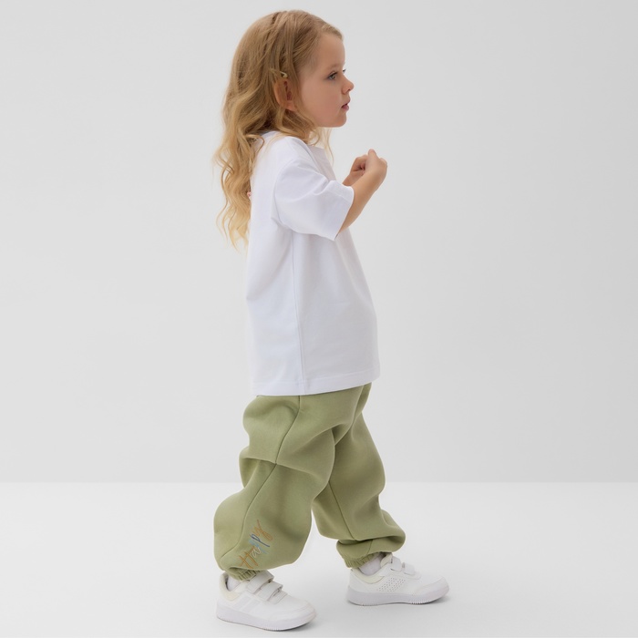 Брюки для девочки с начёсом MINAKU: Exclusive print, оливковые, Oversize рост 158 см — Характеристики