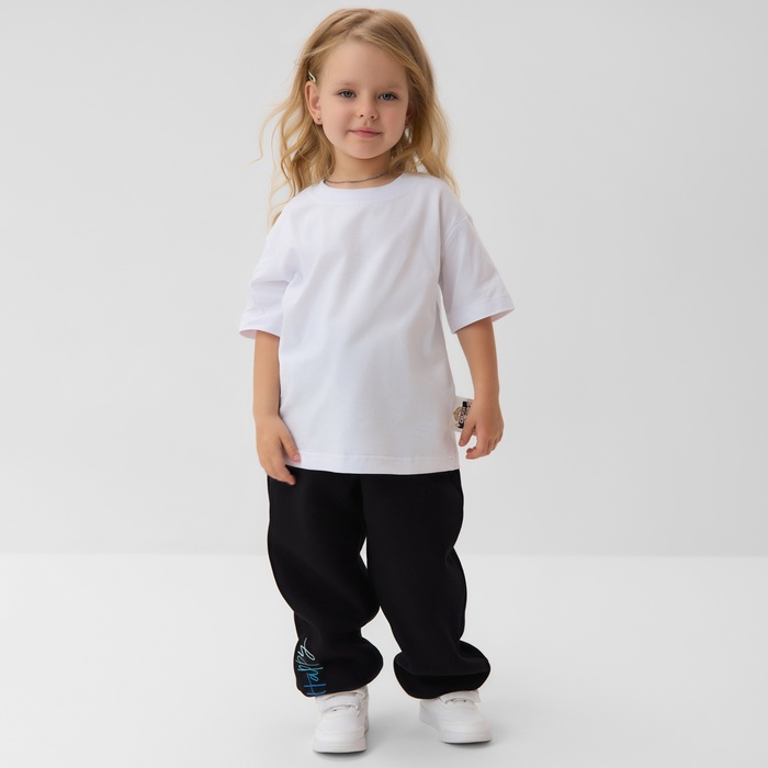 Брюки для девочки с начёсом MINAKU: Exclusive print, чёрные, Oversize рост 116 см