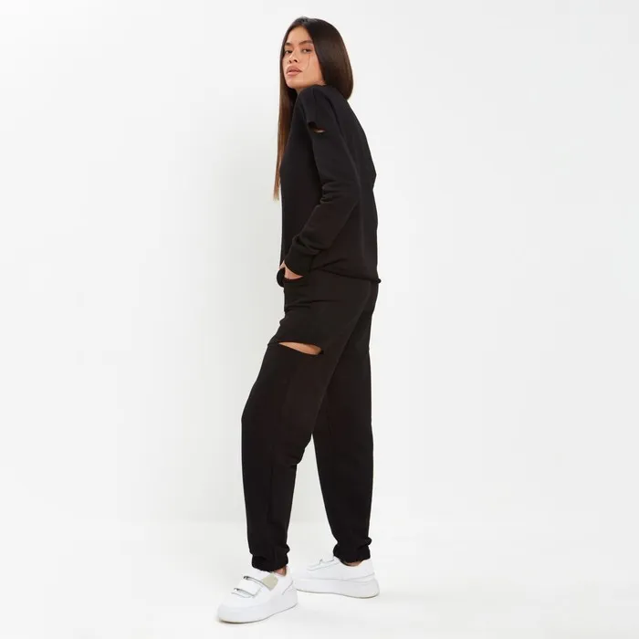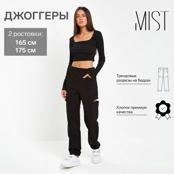 Брюки (джоггеры) женские с разрезами MIST р. 42 (рост 165), чёрный — Характеристики