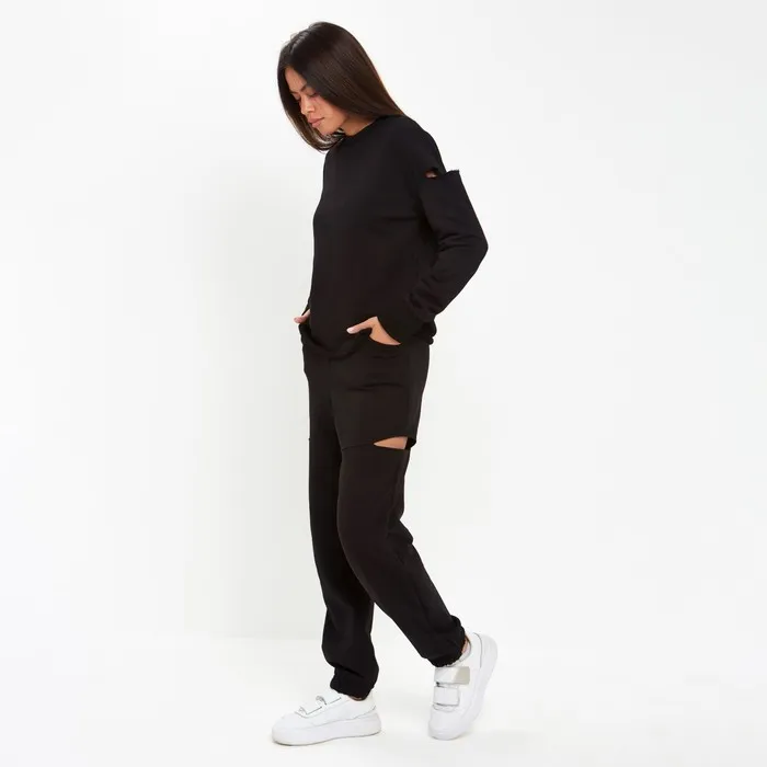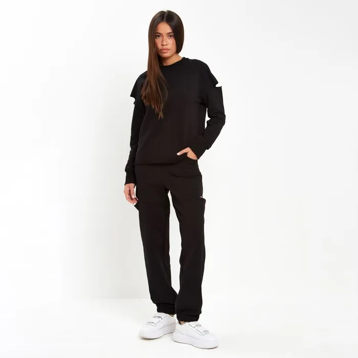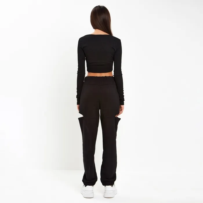 Брюки (джоггеры) женские с разрезами MIST р. 44 (рост 165), чёрный — Характеристики